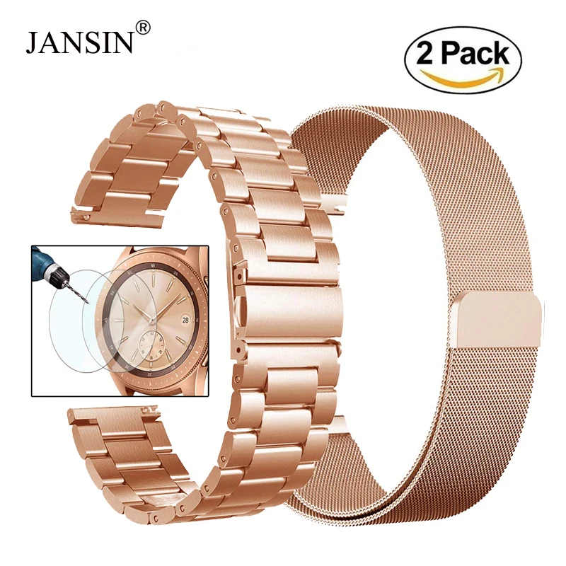 Galaxy Watch 42 мм 46 мм ремешок, 20 мм 22 мм Миланская Петля из нержавеющей стали ремешок для samsung Galaxy 42 мм 46 мм Active 40 мм стекло