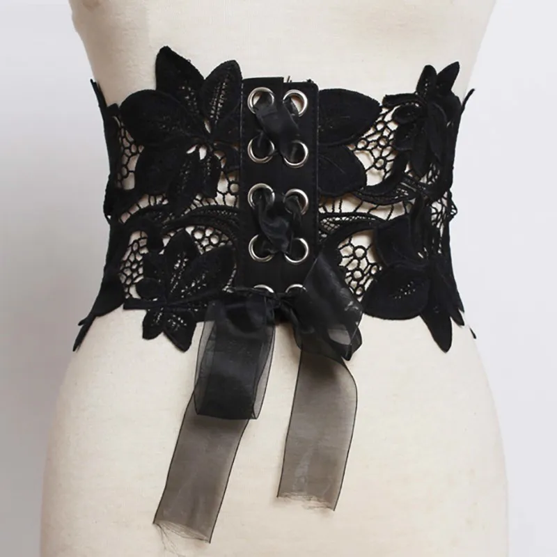[EWQ] Новинка 2018 года; сезон лето-весна; Модный черный кружевной пояс с вырезами; регулируемый пояс с цветочным узором; женский Универсальный ...