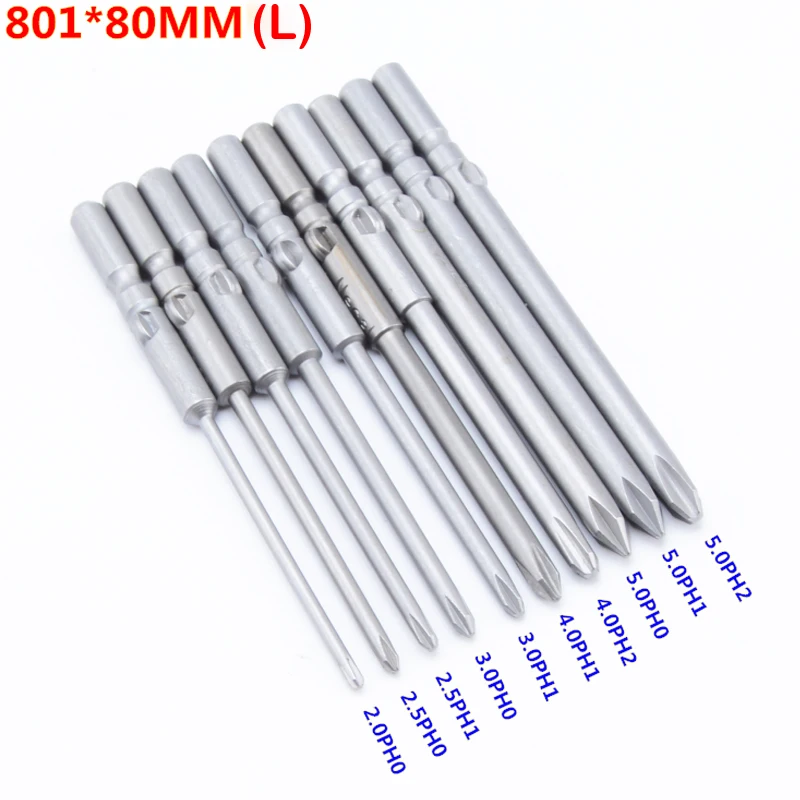 10 шт. 801 Круглый хвостовик магнитные Филлипс кросс Отвёртки биты Шуруповёрты биты PH0 PH1 PH2 80 мм Длина