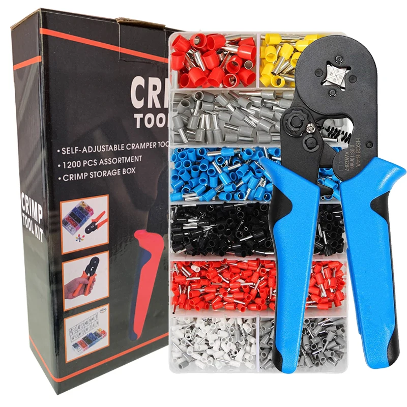 HSC8 6-4 + 1200 шт комплект 0,08-10 мм² AWG 28-7 плоскогубцы Набор саморегулирующийся храповый провод обжимной инструмент для зачистки проводов
