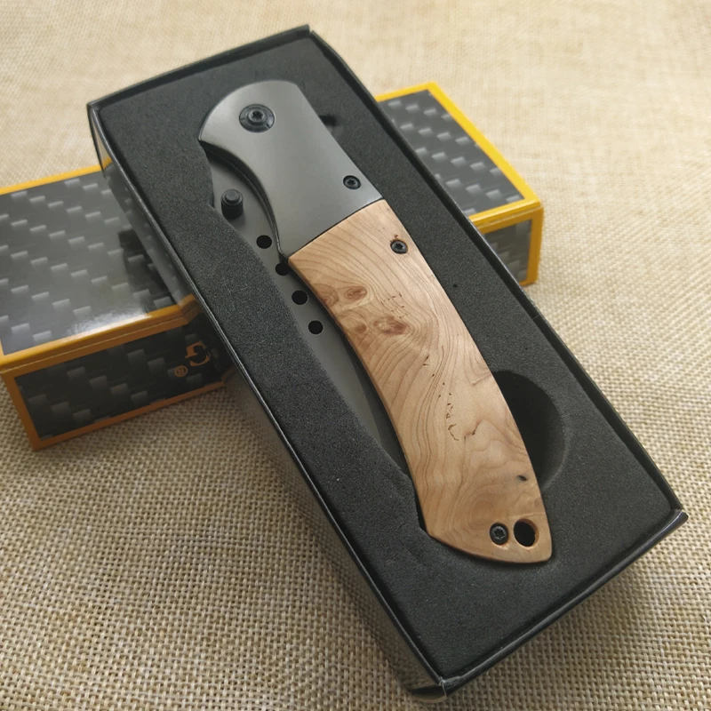 Карманный складной нож из титана и нержавеющей стали с деревянной ручкой, нож для кемпинга, тактический нож
