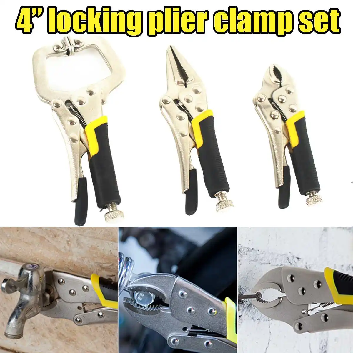 Комплект из 3 предметов, 4 дюйма Сталь уход за кожей лица тиски Сцепление Набор для деревообработки с Тип Зажим прямой штырь плоскогубцы фикс...