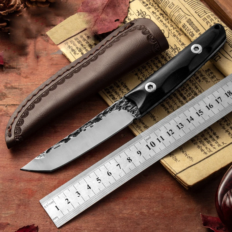 Прямая поставка самурайский весенний стальной нож с фиксированным лезвием, охотничий нож с черной ручкой, походный нож, ручной инструмент с ножнами