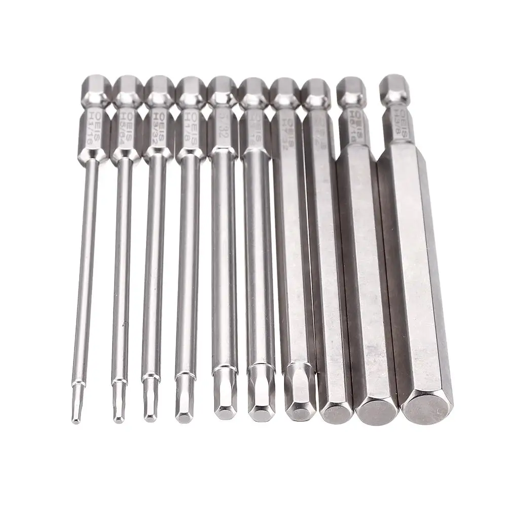 10 шт. 100 мм 1/4 дюйма хвостовик S2 сталь SAE Шестигранная головка торцевой ключ Отвертка набор сверл