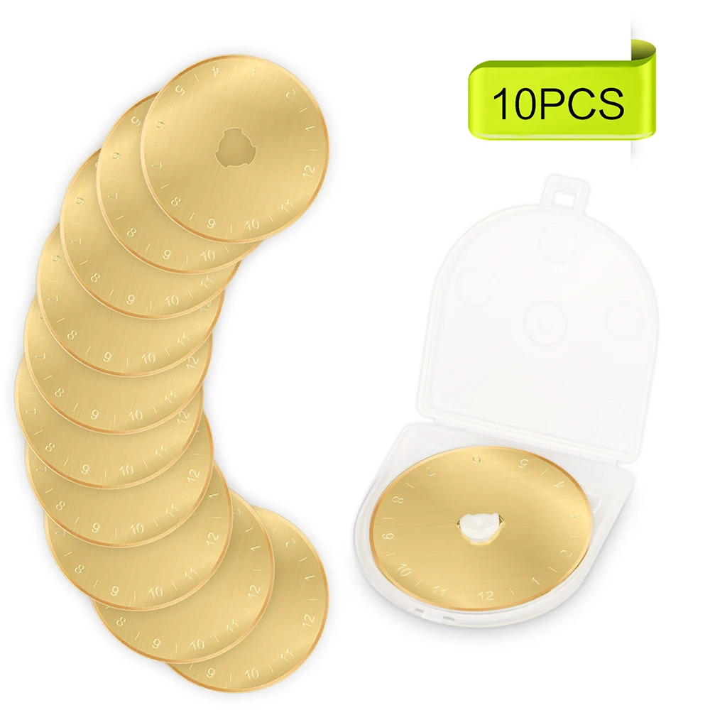 10 шт. 45 мм с титановым покрытием роторные режущие лезвия, идеально подходят для резки ткани, шитья, кожи и бумаги