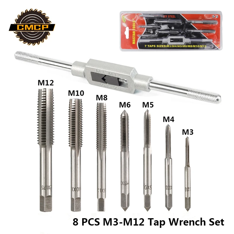 CMCP 7 шт. резьбовые краны с 1 шт. регулируемый гаечный ключ M3 M4 m5 m6 m8 m10 m12 ручной кран гаечный ключ Набор метрический винт кран сверло