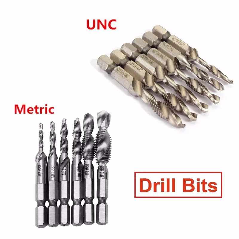 6 шт./компл. HSS 1/4 дюйма шестигранный хвостовик комбинация сверло Набор бит UNC или метрические сверла