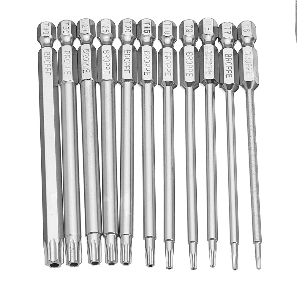 Broppe 11 шт. 100 мм Длинный Стальной Магнитный торкс с шестигранной головкой для безопасности электрическая отвертка Набор бит для магнитной отвертки набор инструментов