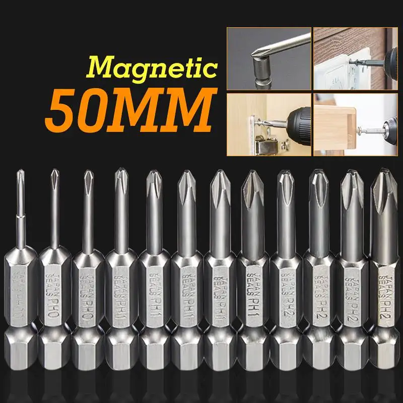 Meigar 12 шт. 50 мм 1/4 дюйма шестигранный хвостовик Магнитный S2 сплав сталь длинный Магнитный Крест отвертка Philips bits набор для ослабления винтов