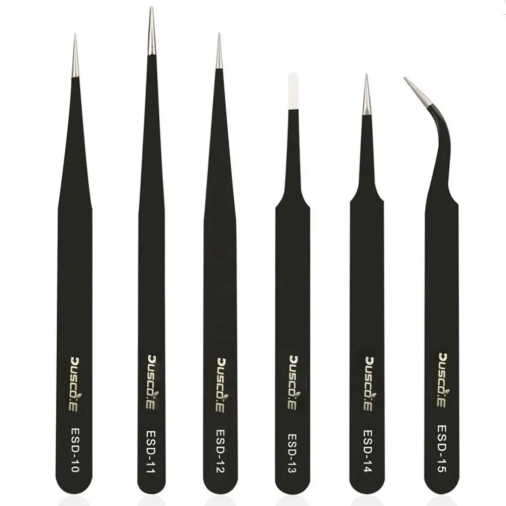 Dusco. E 6 шт. BGA точный ESD Пинцет Набор из нержавеющей стали антистатические пинцеты инструмент для ремонта паяльная станция сварочная помощь