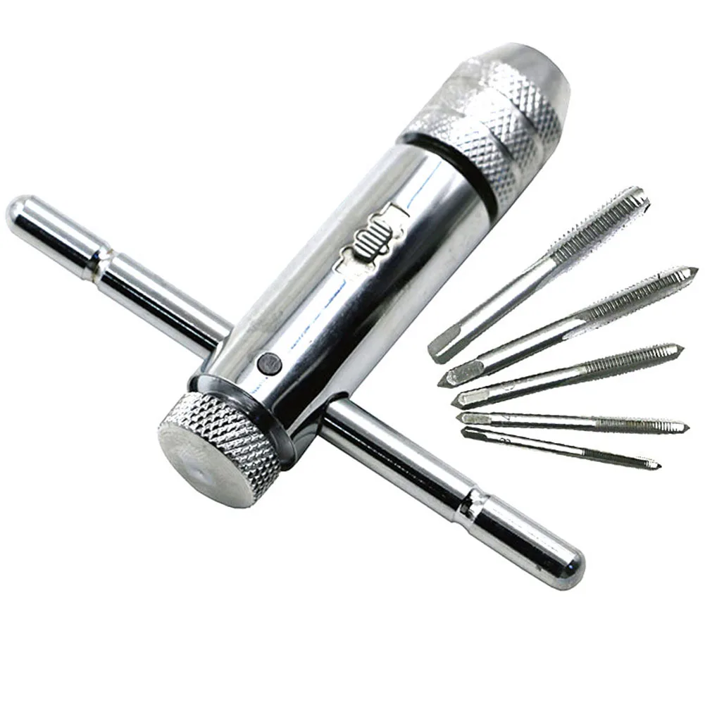 Регулируемая M3-M8 t-ручка трещоточная головка гаечный ключ машинистский инструмент винтовые краны ручной кран сверлильный набор MDJ998