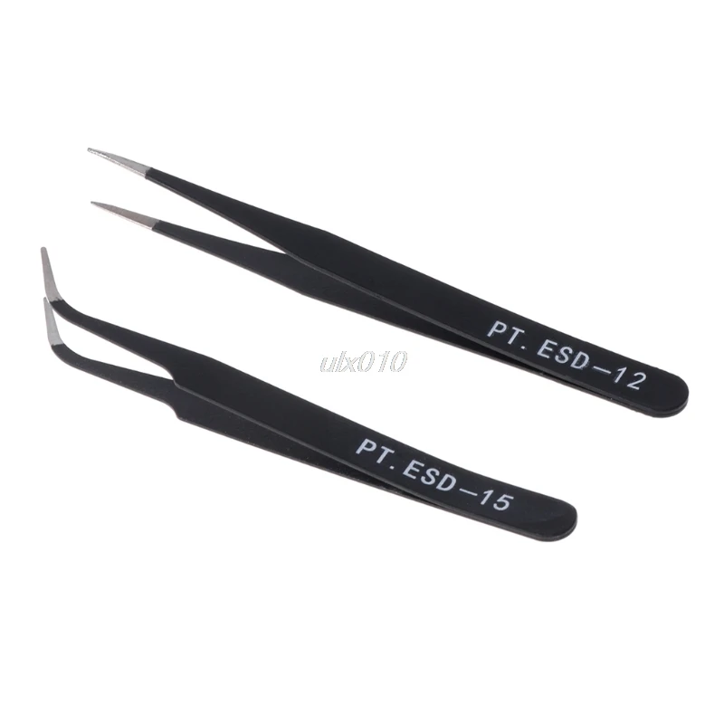 1 шт. антистатические черные Углеродные волоконные пинцеты набор ручных инструментов пластиковые остроконечные плоские головки локоть кру...