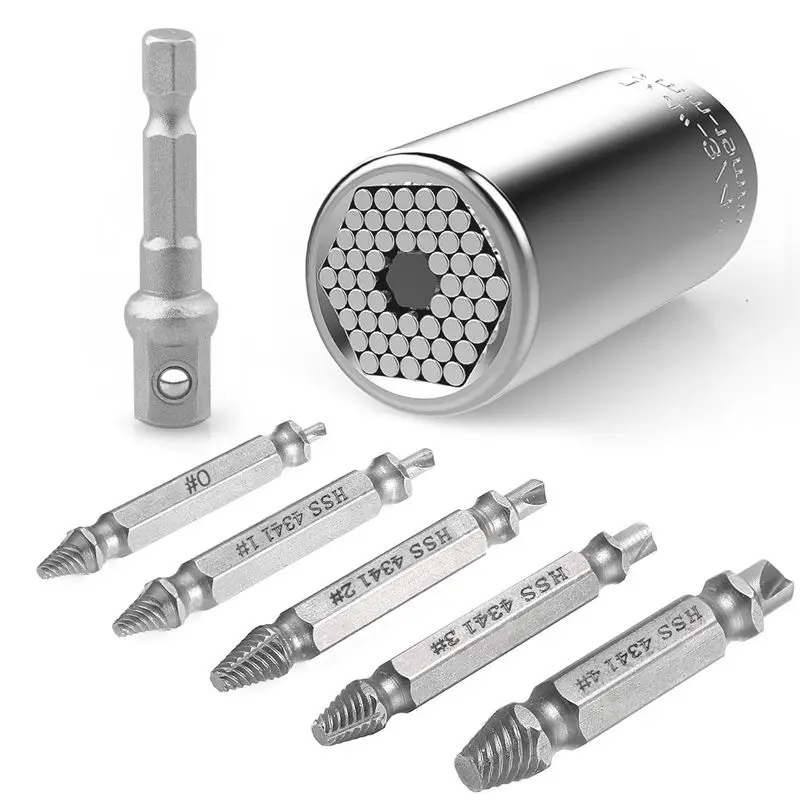 Универсальный разъем поврежденный Винт экстрактор набор, многофункциональный 7 мм-19 мм Универсальный адаптер для розетки гаечный ключ с 5 шт. поврежденный винт R