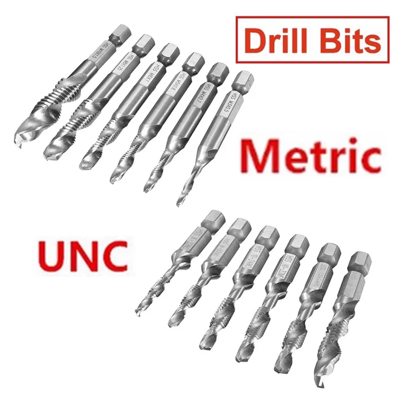 Danu 6 шт./компл. HSS 1/4 дюймов шестигранный хвостовик комбинированная дрель Набор бит UNC или Метрическая зазубренная Зенковка биты Высокоскорос...