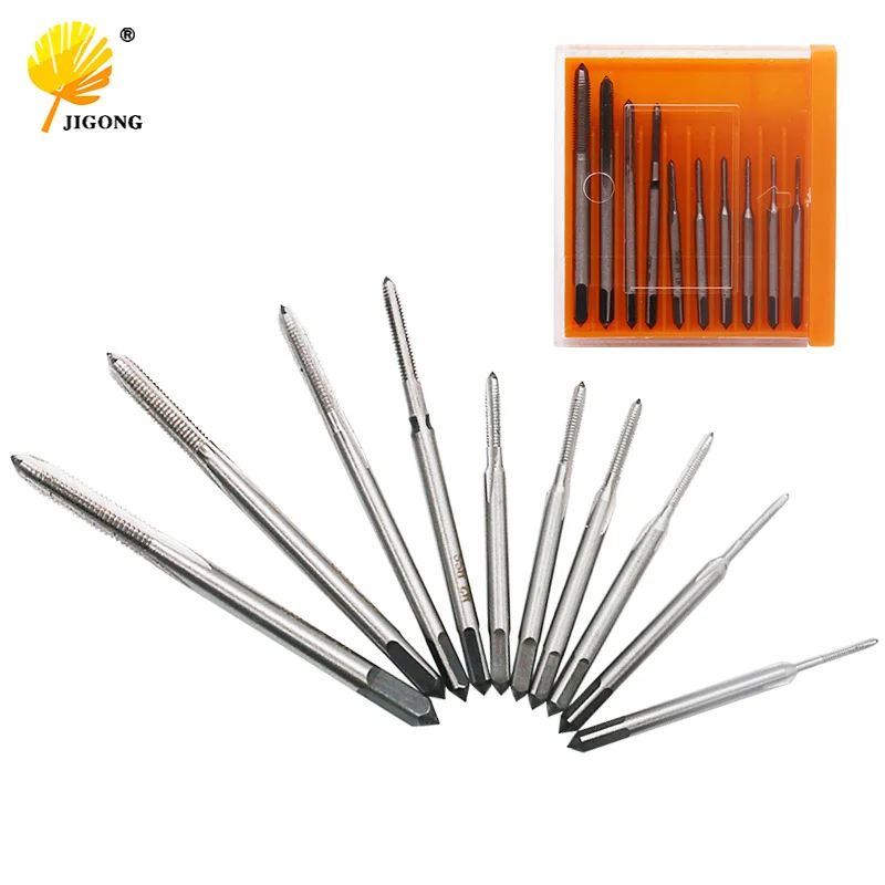 JIGONG 10 шт./лот ручной кран нить провод нарезания резьбы краны атака M1 M1.2 M1.4 M1.6 M1.7 M1.8 M2 M2.5 M3.0 M3.5