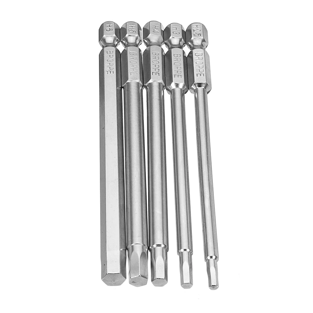 Broppe 5 шт. 100 мм H2.5-H6 отвертка с шестигранной головкой 1/4 дюйма с шестигранным хвостовиком S2 магнитные отвертки H2.5 H3 H4 H5 H6