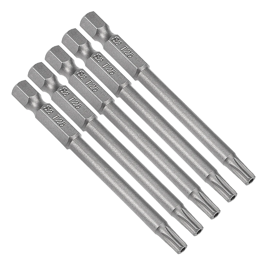 Uxcell 5 шт. 1/4 "шестигранный хвостовик T25 Магнитная безопасность Torx отвертка биты 75 мм длина