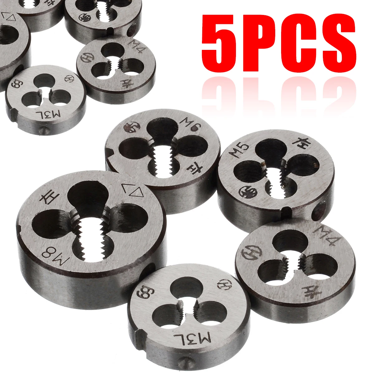 5 шт. резьбонарезная плашка прочный левосторонняя резьба режущий инструмент набор инструментов M3 M4 M5 M6 M8 высокая прочность твердость Метрич...