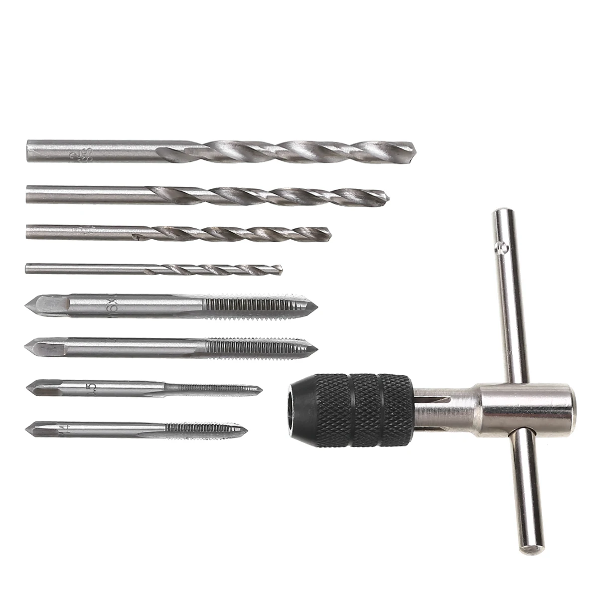 9 шт. T типа ручные краны с винтовой резьбой Reamer шарнирное сверло комплект M3-M6 гаечный ключ набор ручной инструмент