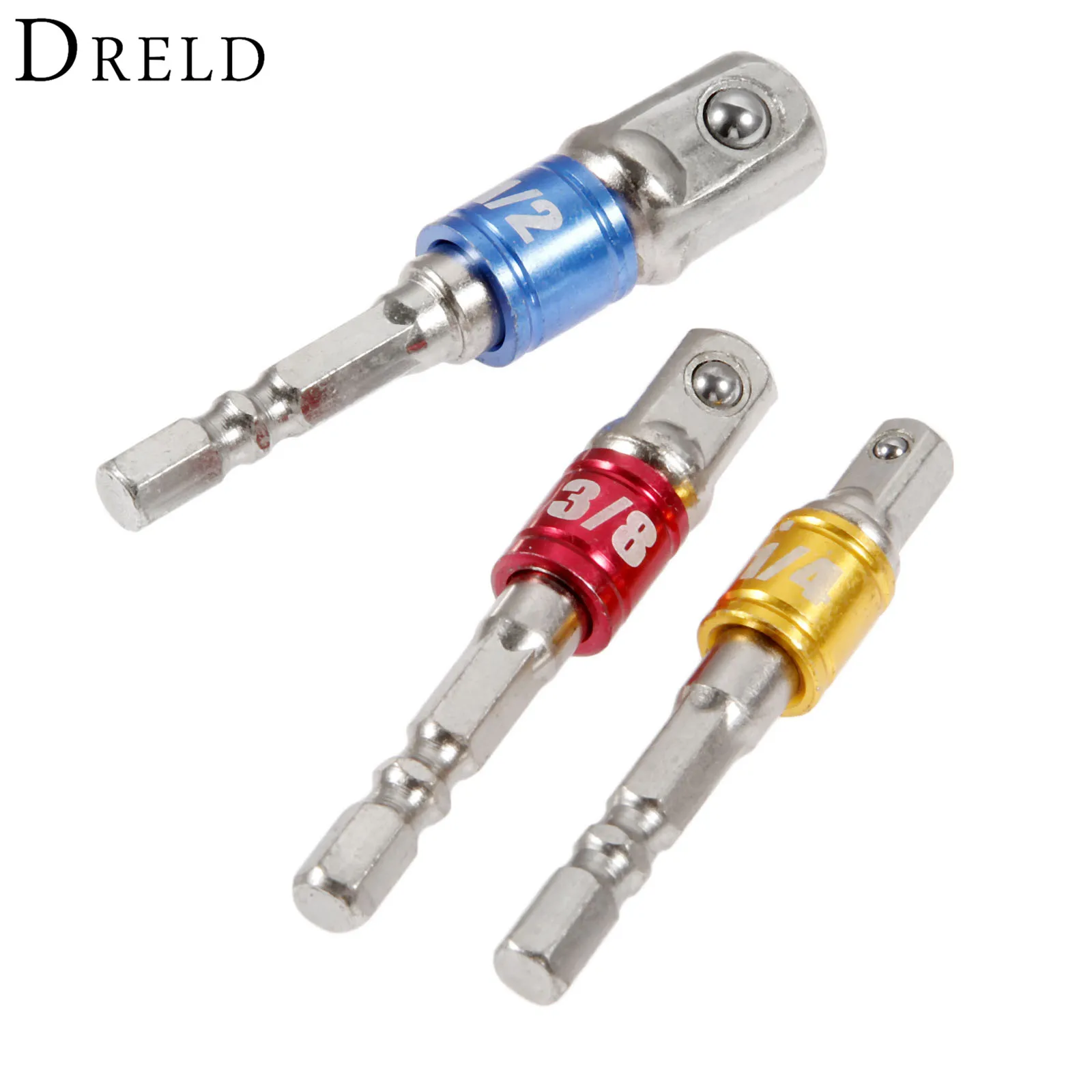 Dreld 3 шт./компл. гнездо бит адаптер Набор шестигранным хвостовиком 1/4 "3/8" 1/2 "влияние Бурильные долото драйвер Алюминий сплав Механические инс...