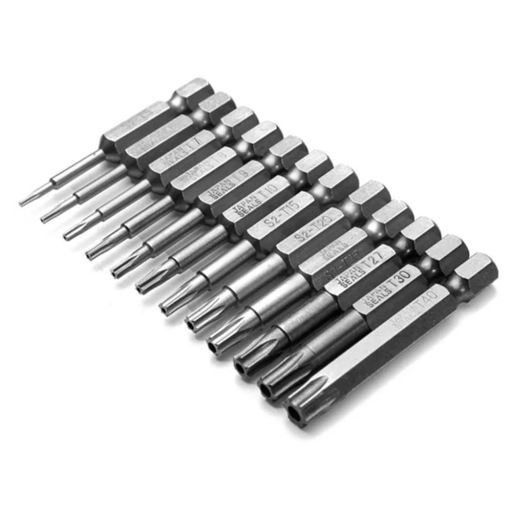 12 шт./компл. S2 Безопасности TORX отвертка инструменты бит 1/4 "хвостовик с отверстием T5-T40 электрическая отвертка Air Инструменты Бит