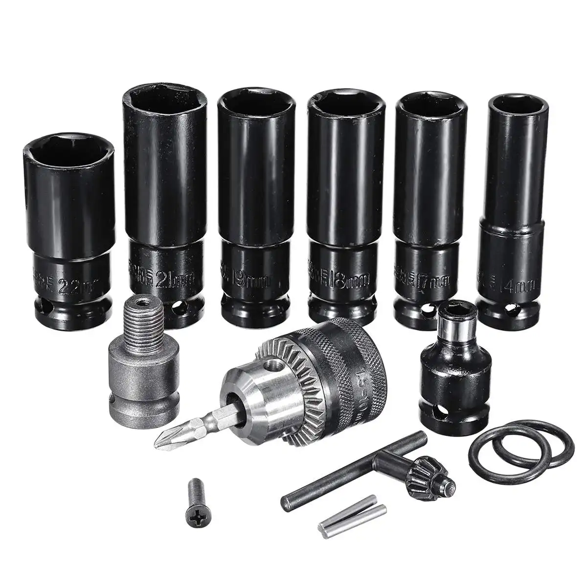 Набор ударных торцевых головок, универсальные аксессуары для электрического ударного гайковерта, рукава, патрон для дрели, адаптер для гае...