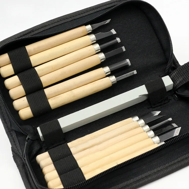 12 шт Деревянный инструмент для резьбы, нож ручной резиновый уплотнитель с шлифовальным камнем набор