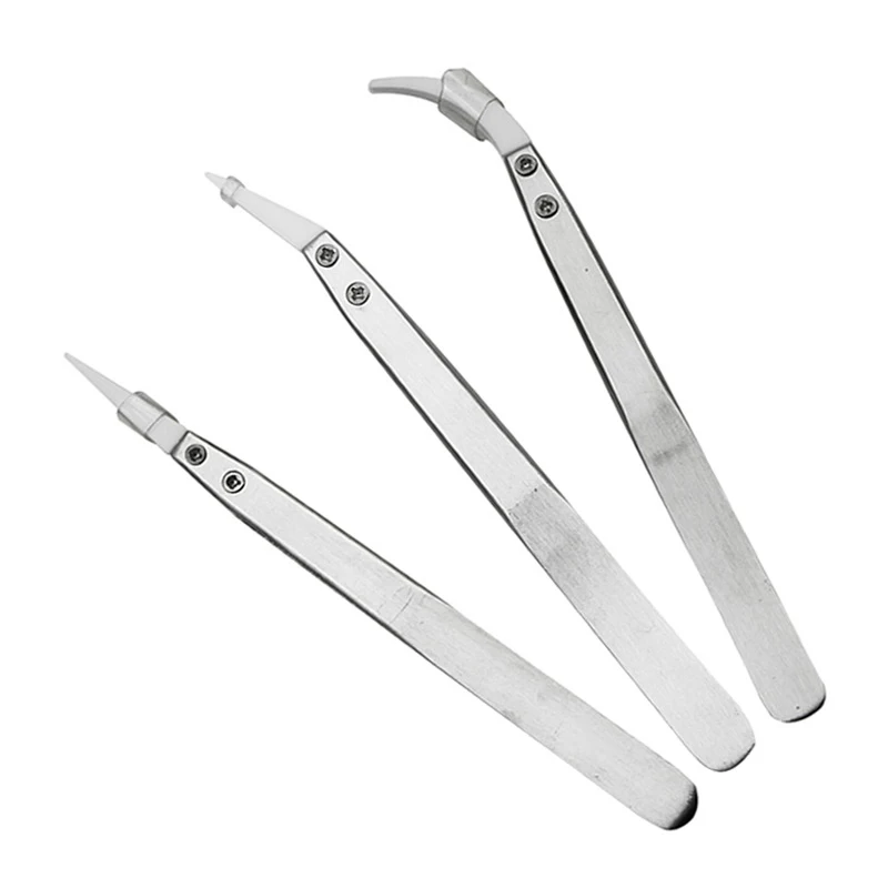 3 шт. антистатические керамические пинцеты из нержавеющей стали набор изогнутая прямая законцовка прецизионные пинцеты изолированные терм...