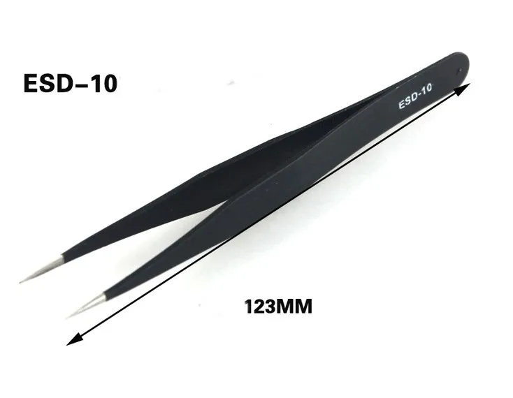 ESD-10 мм 123 мм антистатические электронные нержавеющая сталь пинцет компоненты Пинцет коррозии обслуживания Ремонт Инструменты