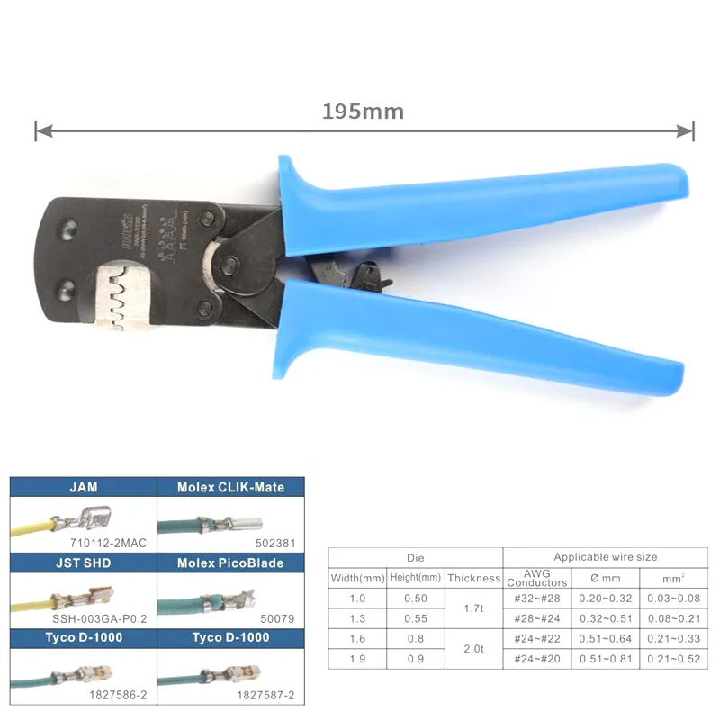 Инструмент для обжима Micro-коннектора 0,03-мм, 32-20AWG, щипцы для трещин для D-Sub, открытые баррели для Molex,JST,JAE,TYCO-E