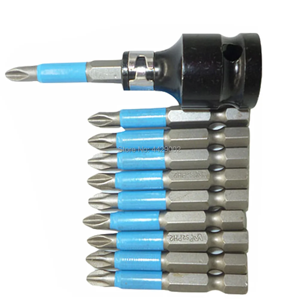 10 шт. 50 мм PH2 отвертка Philips bits отвертка сверло Мощность дрель Philips + 1/2 "д-р до 1/4" шестигранный хвостовик адаптер конвертер