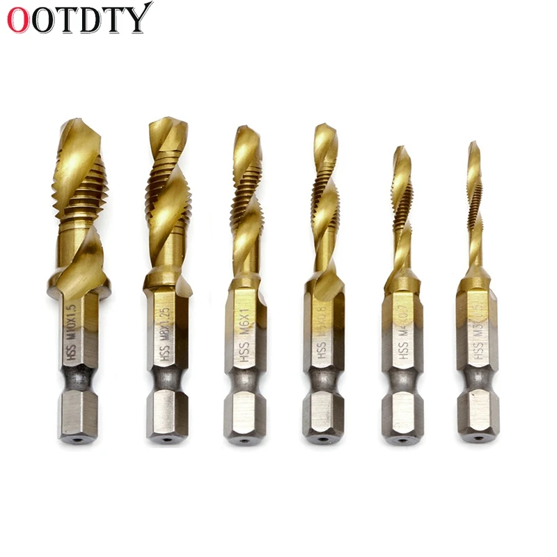 OOTDTY Новый M3-M10 шестигранным хвостовиком титановое покрытие HSS ручной винтовой резьбой метрической нажмите сверла