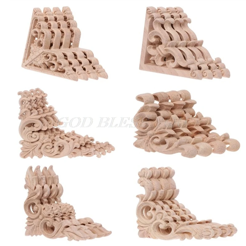 4 шт./компл. Деревянные Резные углу накладка аппликация Неокрашенный переводная картинка в виде рамки для домашней мебели Декор 6x6 см