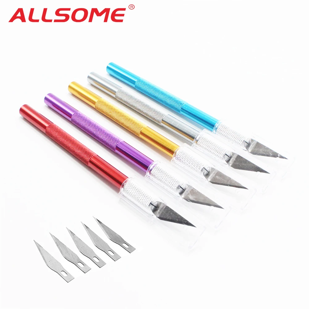 ALLSOME Нескользящая металлическая ручка любительский резец Ремесло Скульптура гравировка Универсальный нож с 6 шт. лезвие режущий инструмент
