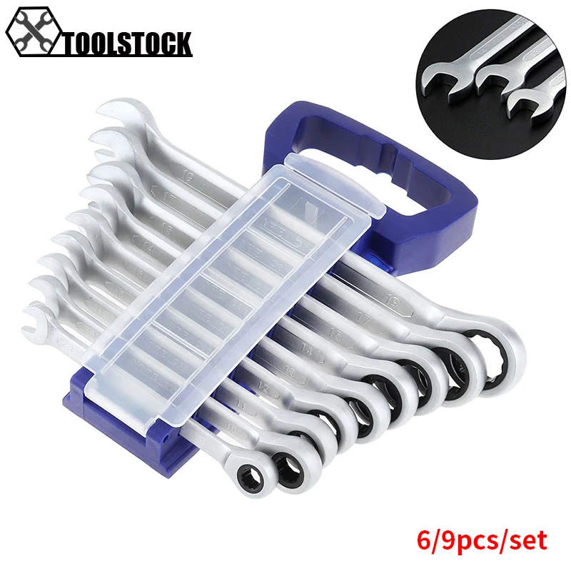 6/9 шт./лот набор гаечных ключей 8-17 мм Профессиональный Трещоточный ключ набор инструментов комбинированный гаечный ключ кольцо гаечный ключ для установки