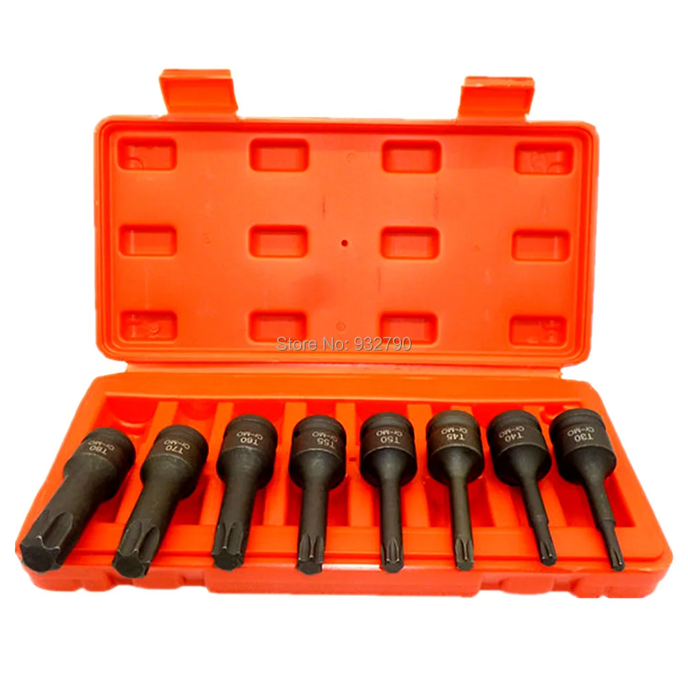 8 шт. 1/2 "торцевая ударная головка CR-MO Торцевая отвертка удлинитель торцевой гаечный ключ сплайн торцевые головки T30 T40 T45 T50 T55 T60 T70 T80