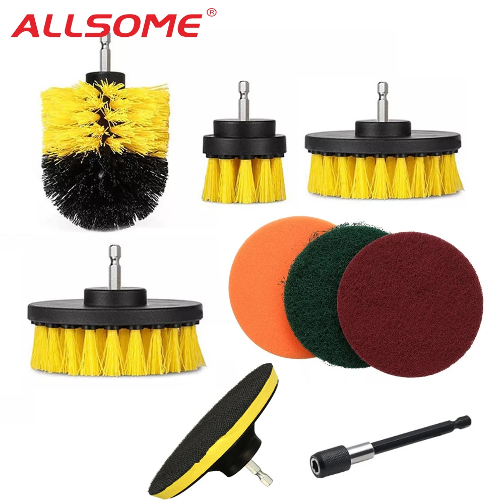 ALLSOME 9 шт. насадка в виде щетки скраб колодки мощность щетка для мытья посуды комплект щетка для чистки Электроинструмент HT2776