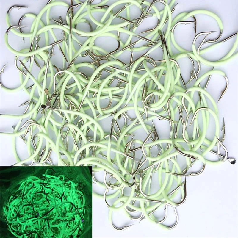 10 шт./лот светящийся Высокоуглеродистый стальной колючий рыболовный крючок 9 #-18 # Нержавеющая кольцевая форма фосфоресцирующий рыболовный ...