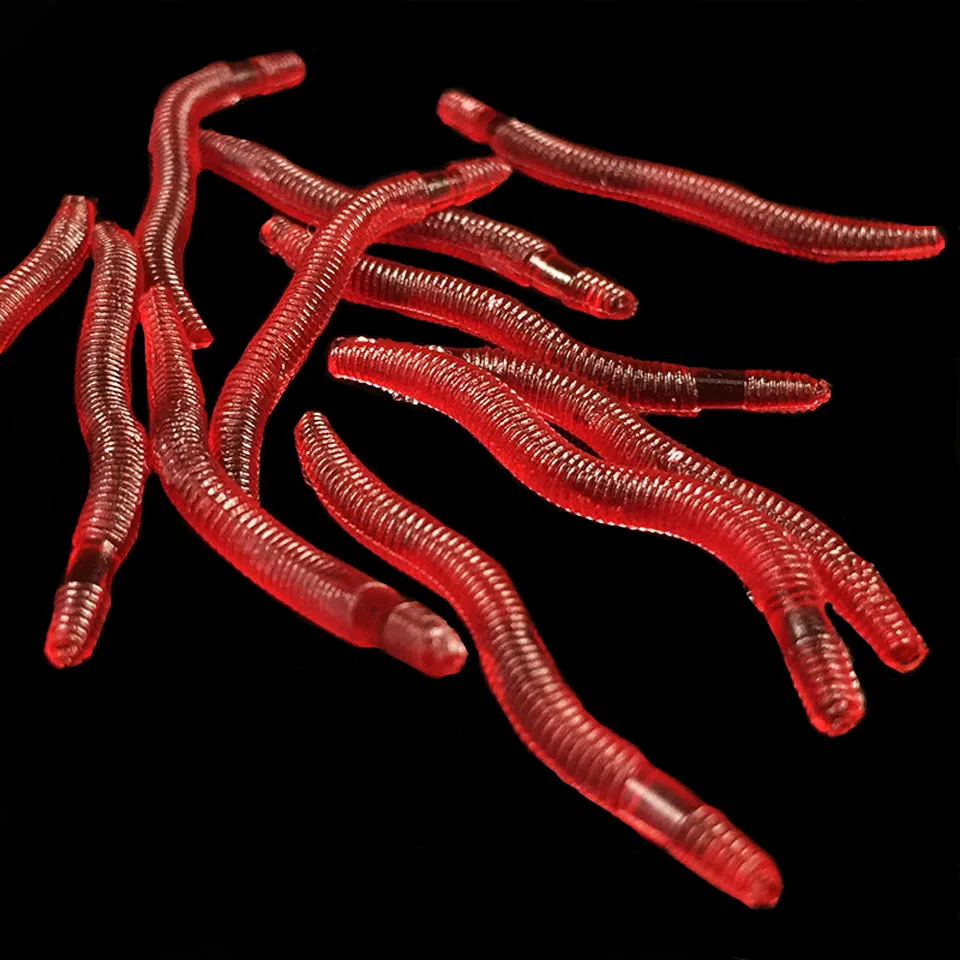 50 шт./лот, Мягкая приманка для рыбалки, имитация дождевого червя, красные светящиеся черви, искусственные рыболовные приманки, реалистичные ...
