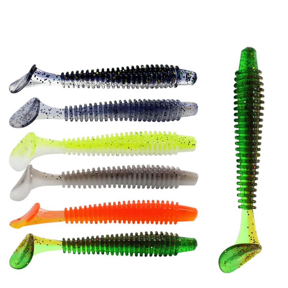 10 шт./лот воблеры для ловли на крючок 60 мм 70 мм shad T-Мягкая приманка с хвостом, силиконовые приманки, рыболовные снасти для ловли щуки