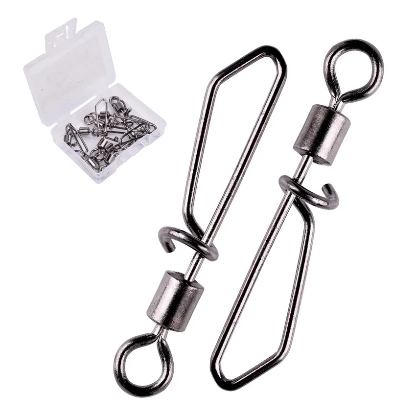 10 Pcs/ Box Fishing Rolling Swivels Connector with T shape Snap 2#-12# For Fishhook Lure Tackle Carp Fishing Accessories