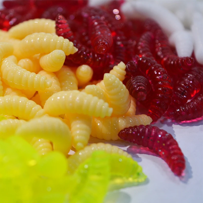 50 шт. 2 см 0,4 г приманка-личинка для рыбалки Grub мягкие приманки запах червей Карп рыболовные приманки для рыб аксессуары