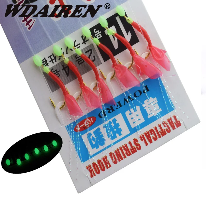 6 шт./упаковка Sabiki приманки для крючок с веревкой для рыбалки силиконовые мягкие приманки Souple юбка световой шарик Искусственные рыбы постав...
