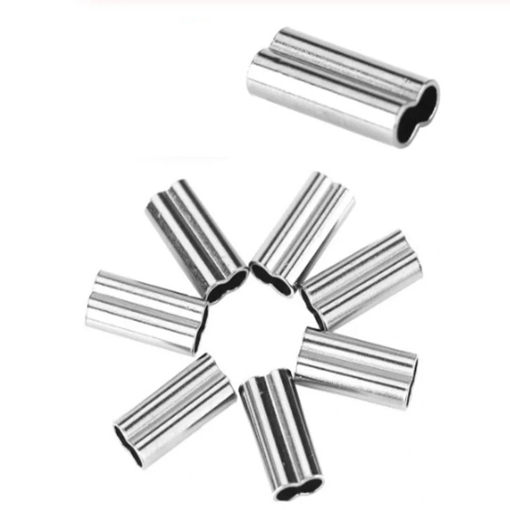 50 шт Медь трубки коннектор для лески двойной отверстие трубки Медь обжимные втулки Комплект Box Рыбалка рыболовное снаряжение принадлежност...