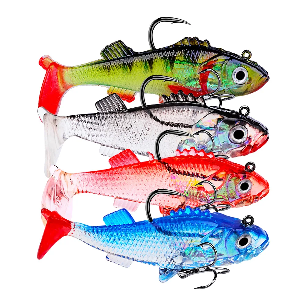 1 PCS Artificial Soft Fishing Main 8cm / 15.5g T Shape Tail Fishing Bait Spinners With 2 Hooks Fly Fishing Lures Gear