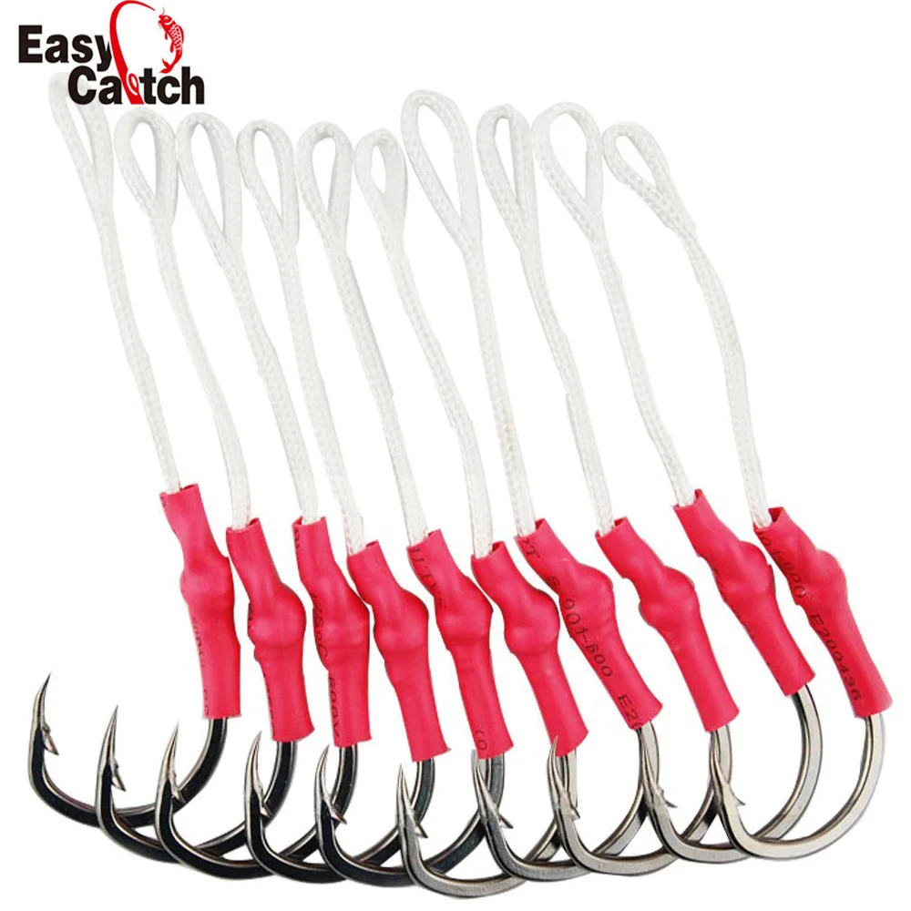 40 шт 10827 джиг помощь рыболовные крючки джиггинг помощь приманка для рыболовного крючка с PE леской Размер 1/0 2/0 3/0 4/0 5/0 6/0 7/0 8/0 9/0 10/0