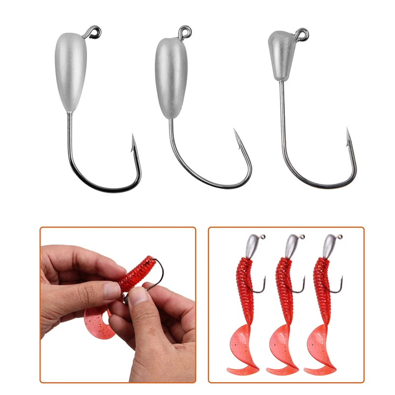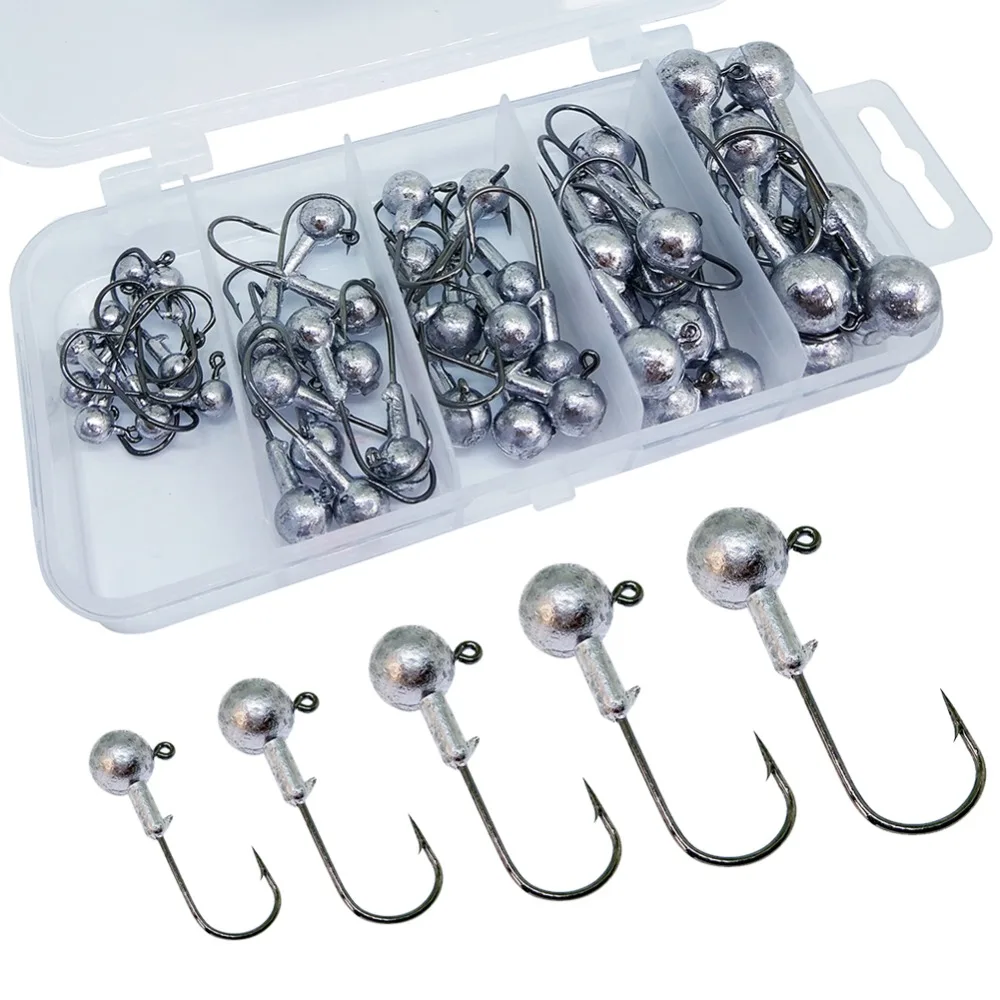 20-50 шт. набор рыболовных крючков 1,5 г-20 г свинцовые джигхедовые рыболовные крючки Вибрационный крючок Неокрашенный червячный круговой крюк ...