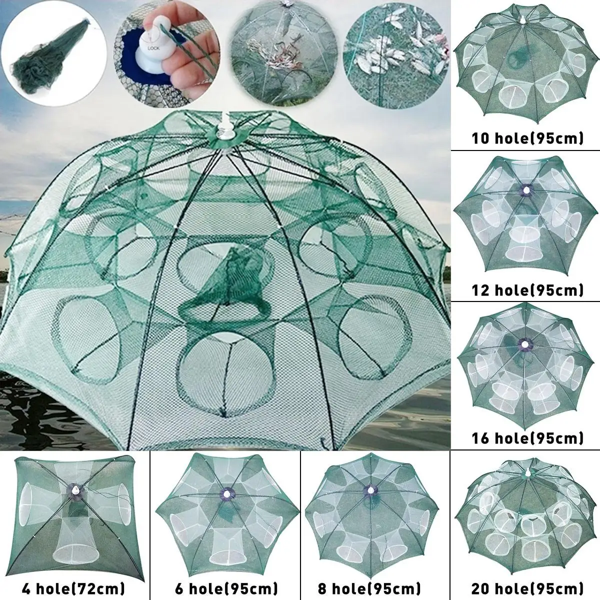 Усиленная Автоматическая рыболовная сеть с 4-20 отверстиями, клетка для креветок, нейлоновая Складная Рыболовная Ловушка для крабов, литая р...