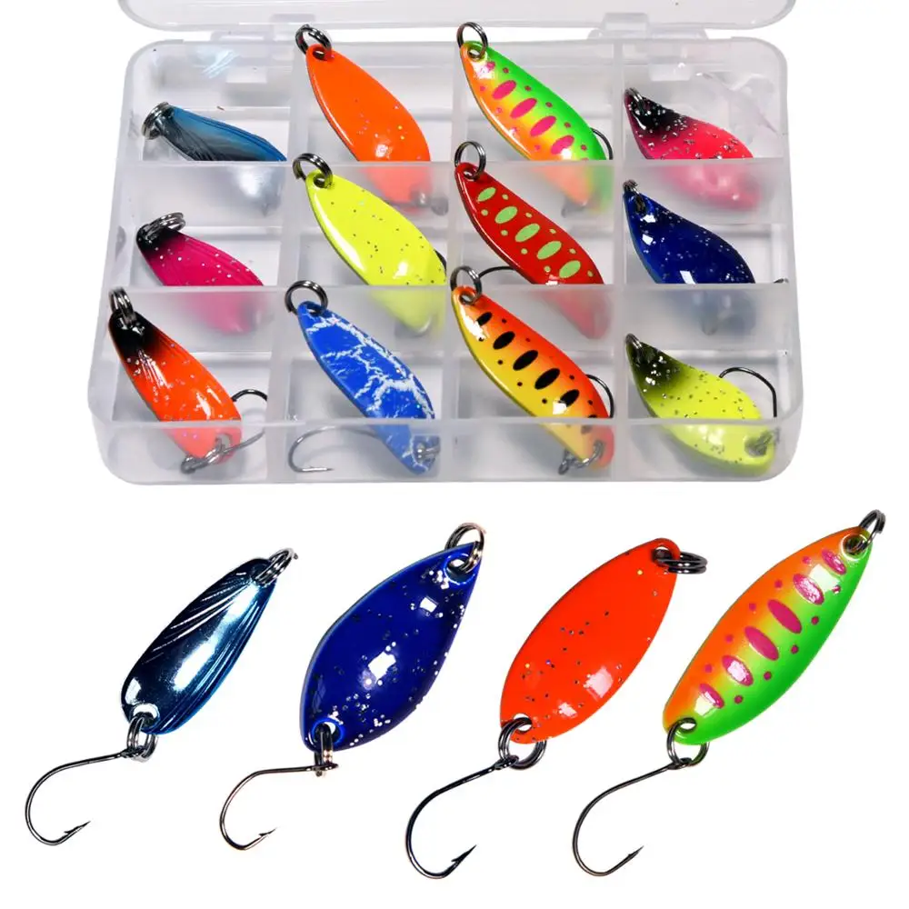 12pcs/box Trout Fishing Spoon Lure Set 2.8g 3g 3.6g 5g Fishing Metal Shone Spoon Artificial Hard Bait For Fishing