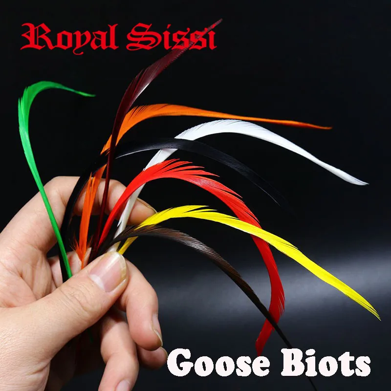 Горячая 80 шт./лот 8 цветов Смешанная муха завязывание Гусь Биот 5 ''-8'' перья материалы для завязывания для stonefly Нимфа Сплит хвосты и вниз крыль...